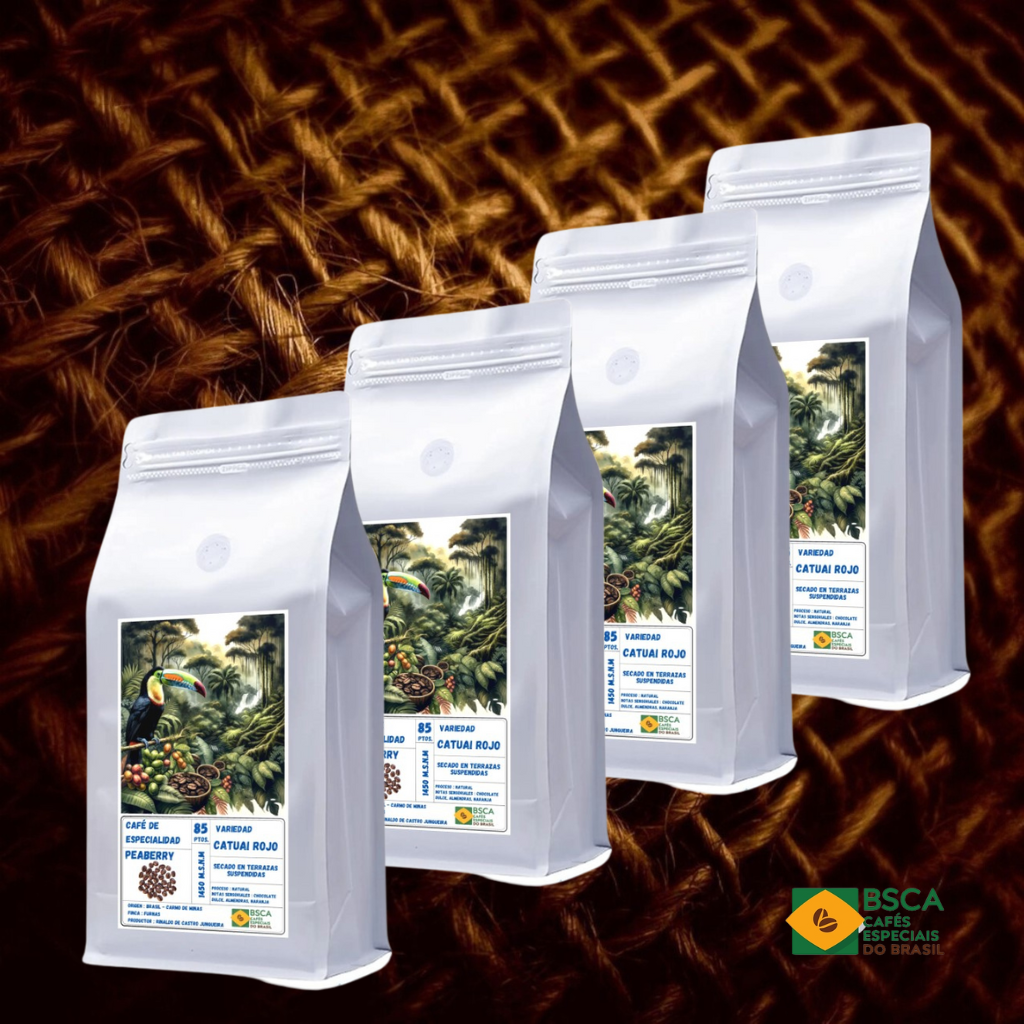 4 bolsas de 1 kg cada una - Envasado en bolsas trilaminadas con válvula desgasificadora, que preservan la frescura y aromas del café recién tostado.